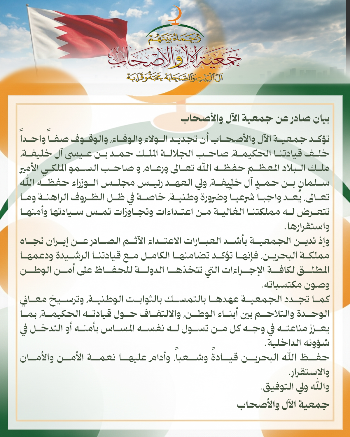 بيان صادر عن جمعية الأل والأصحاب البحرين